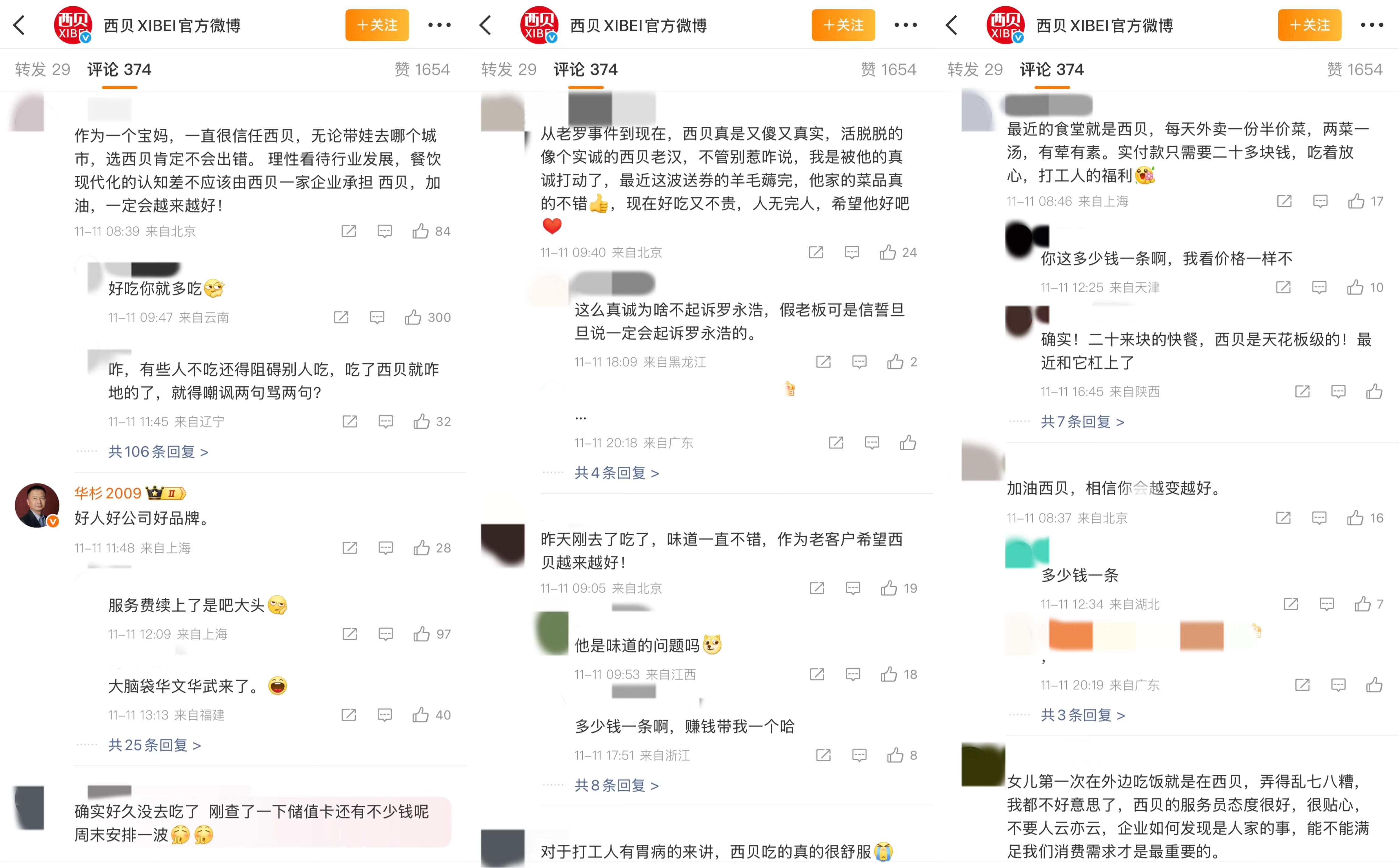 微博认证信息为“华与华营销探讨有限公司董事长华杉”的“华杉2009”也在研究区留言,赞西贝为“好东谈主好公司好品牌”。